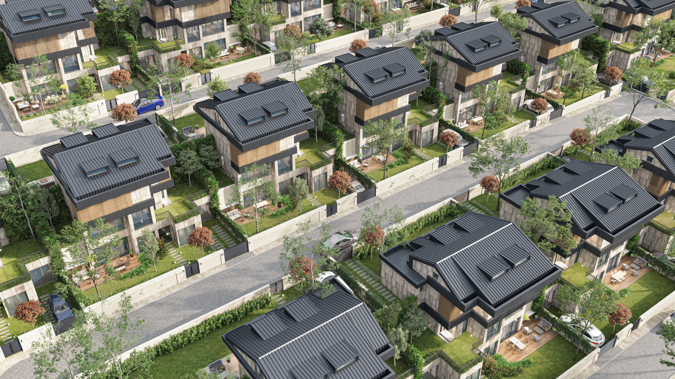 Villalar, yüksek kaliteli malzemelerle ve estetik detaylara önem verilerek tasarlanmıştır. İç ve dış mekanların kusursuz birleşimi, özel peyzaj düzenlemeleriyle sakinlerine huzurlu ve ayrıcalıklı bir yaşam sunar.